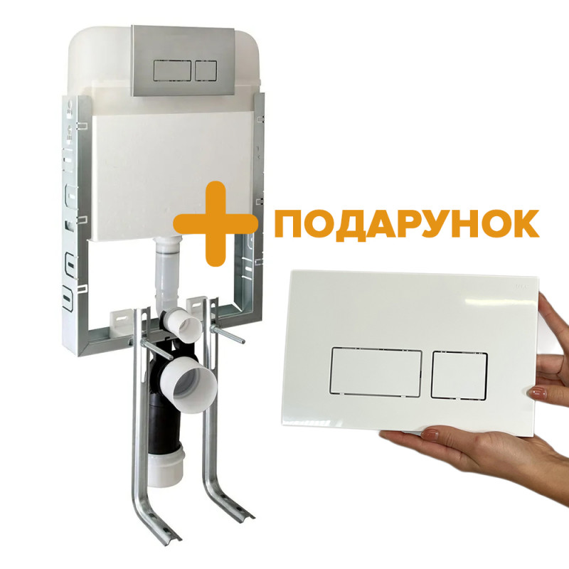 Основные характеристики Инсталляция для унитаза без рамы 3/6 л + кнопка слива в подарок Sanpreis