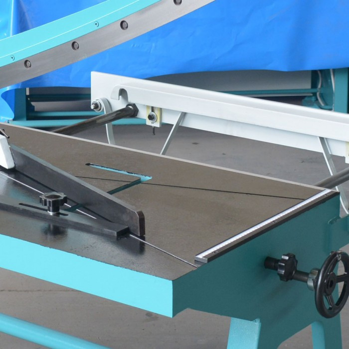 - Задний упор длиной до 500 мм обеспечивает возможность резки длинных листов без искажения и деформации.