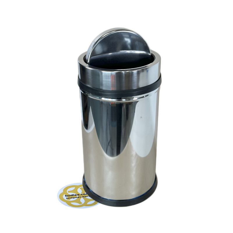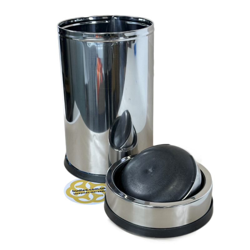 Ведро, ободок, и верхняя часть крышки изготовлены из нержавеющей стали AISI 430. Крышка у ведра поворотная, съемная и имеет посередине магнит. Он нужен для фиксации крышки в горизонтальном положении после выброса мусора. Внутрь ведра можно поместить мусорный пакет и зафиксировать его крышкой.