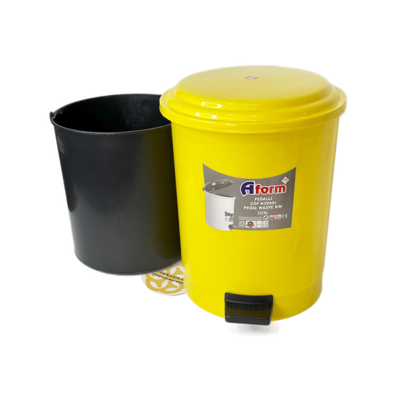 Основные характеристики Пластиковое мусорное ведро с педалью 30 Л, круглое, желтый Afacan Plastik