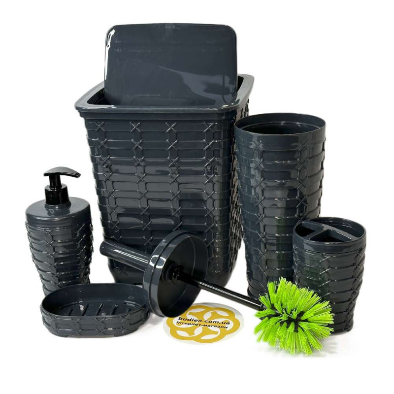 Цвет аксессуаров набора антрацит придает им классический и элегантный вид, что позволяет идеально сочетаться с любым стилем и цветовой гаммой вашей ванной комнаты. Изготовленный из прочного ABS пластика, этот набор аксессуаров обеспечивает длительный срок службы, сохраняя при этом свой первоначальный вид и функциональность.