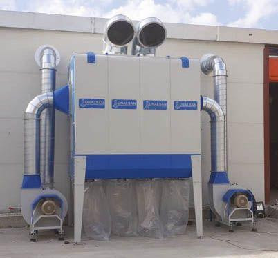 Каждая секция имеет два полиэтиленовых мешка для сбора отходов и 18 рукавных фильтров размером D160х1680 мм.