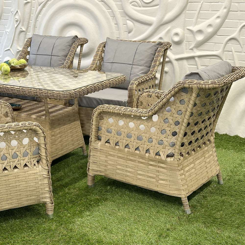 - Экологически безопасная: Искусственный ротанг является экологически чистым материалом, что делает этот комплект мебели безопасным для здоровья и окружающей среды.