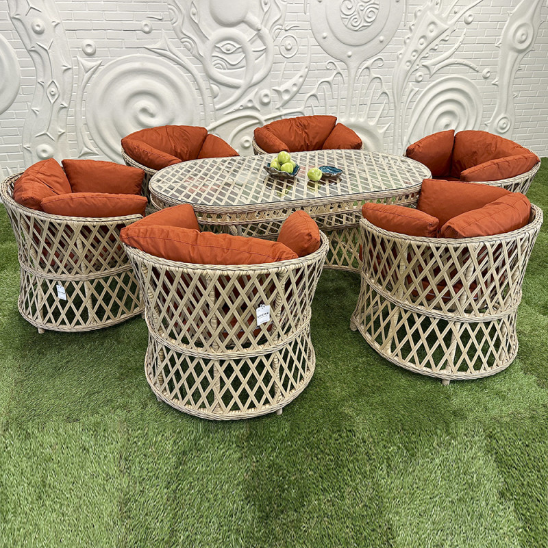 - Комфорт и эргономика: Набор включает в себя обеденный стол и 6 стульев с мягкими подушками, обеспечивая максимальный комфорт для ваших гостей и семьи во время отдыха на свежем воздухе. Стулья имеют эргономичную форму, что делает сиденья удобными и поддерживающими правильное положение спины.