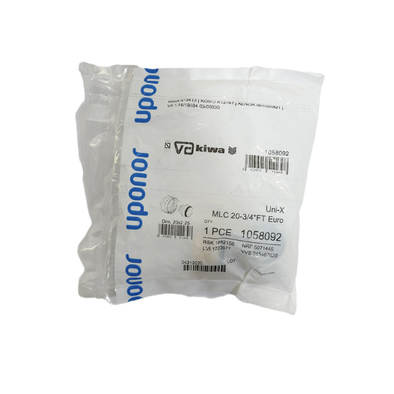 Основные характеристики Зажимной адаптер Евроконус MLC 20-3/4" ВР Uponor Uni-X Uponor