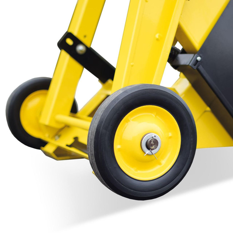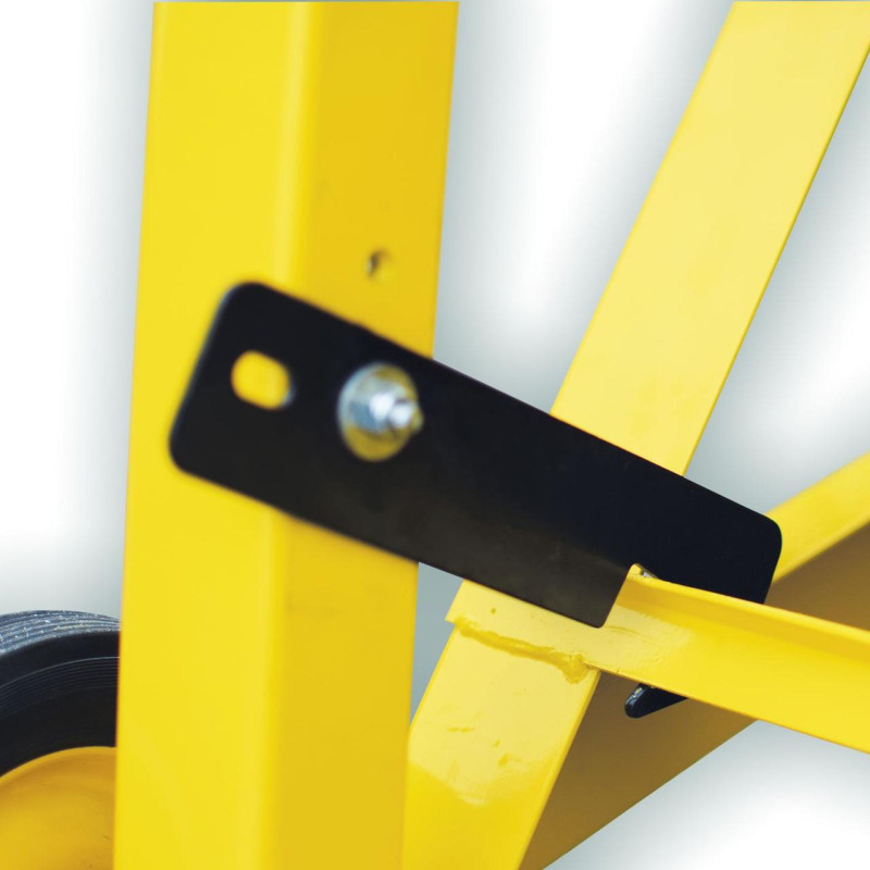 - Стійкі гумові шини та транспортувальна ручка з транспортним замком забезпечують комфортне та безпечне транспортування пили в різні місця.
