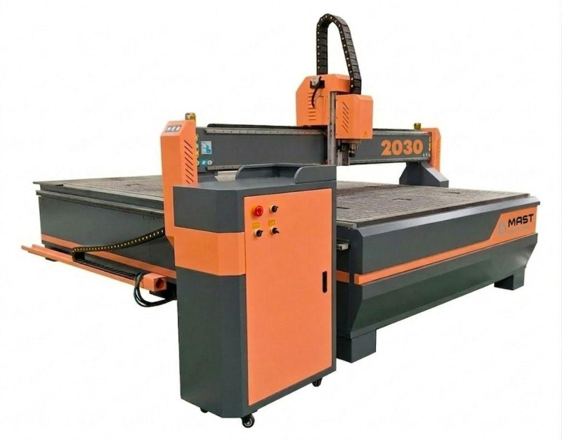 Фрезерный станок по дереву с ЧПУ MAST HOLZTECHNIK 2030Pro - это промышленное оборудование для высокоскоростной, высокоточной обработки древесины, плитных материалов, акрила, пластика и композитов. Благодаря жесткой конструкции класса Heavy Duty также подходит для фрезеровки и гравировки цветных металлов (алюминий, медь, латунь). Рабочая область 2000×3000×200 мм позволяет обрабатывать крупногабаритные материалы. Вакуумный стол с Т-образными пазами дает возможность быстро фиксировать большие листы без зажимов и надежно закреплять мелкие детали и объемные заготовки неправильной формы. Система интеллектуального мониторинга предотвращает повреждение поверхности стола вследствие ошибок оператора или неправильных настроек инструмента. Функция интеллектуальной защиты от выхода за пределы поля автоматически останавливает станок, если загруженная графика превышает размер зоны обработки.