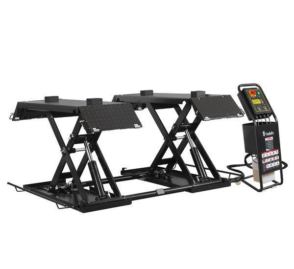 Подъем платформ производится с помощью гидравлического цилиндра и занимает всего 35 с, что обеспечивает плавность хода и экономит рабочее время. Длина платформ 1400 мм (2030 мм с заездами) универсальная для транспортных средств с разным типом кузова. Мобильная панель управления на колесах делает этот ножничный подъемник 230 В для СТО максимально удобным и безопасным в эксплуатации.