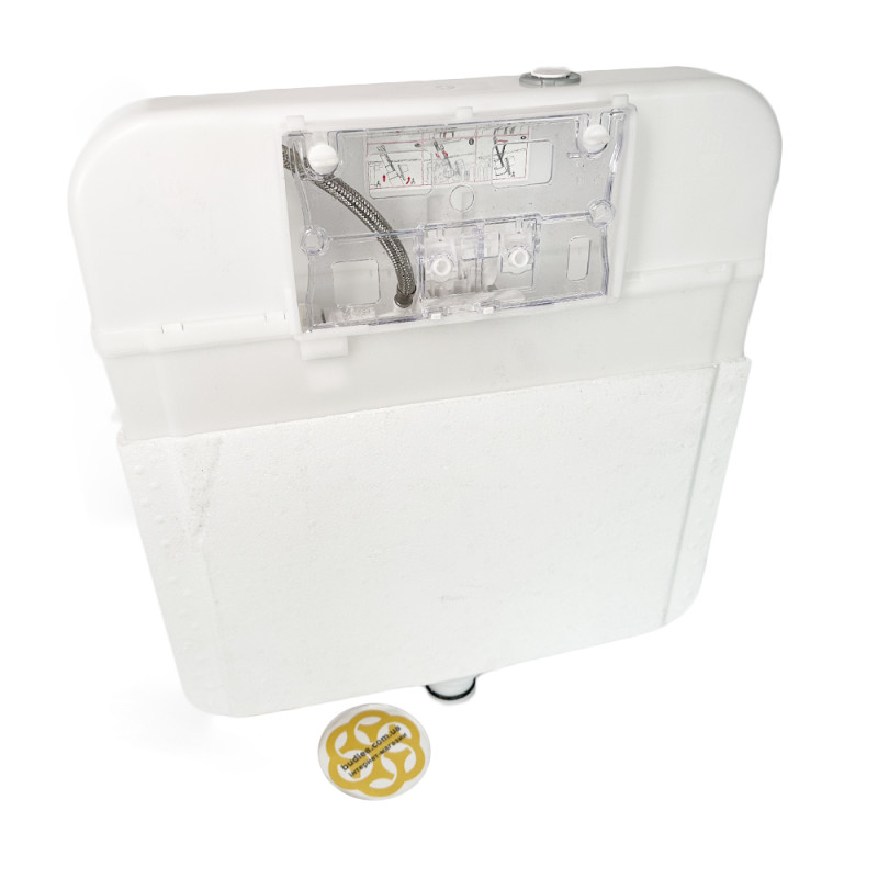 Сливной бак разработан для того, чтобы заказчик смог получить самую оптимальную цену на инсталляцию скрытого монтажа для чаши Генуя и при этом не потерять качество продукта.