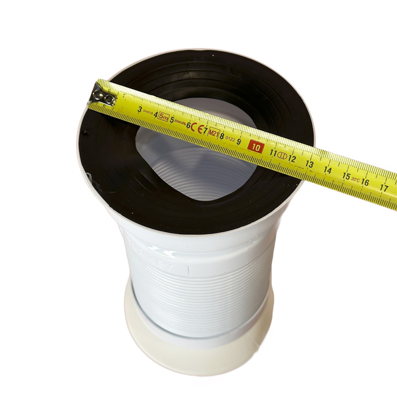 Гибкое соединение позволяет легко адаптироваться к различным условиям монтажа. Благодаря возможности растяжения от 270 до 500 мм, этот продукт может быть использован как для стандартных, так и для нестандартных расстояний между унитазом и канализационной трубой. Это делает его идеальным выбором как для новых установок, так и для ремонтных работ, где может потребоваться изменение расположения сантехнических коммуникаций.