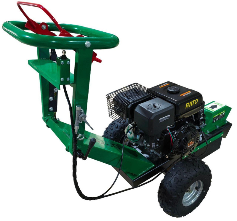 Для максимальной эффективности измельчения зубья фрезы расположены в 3 плоскостях (прямые, левые, правые). Благодаря ширине 80 см измельчитель без проблем проходит в калитки, ворота и узкие проходы. Большие колеса с протектором легко проезжают по неровным поверхностям, а регулируемая, эргономичная ручка настраивается под рост оператора, что уменьшает нагрузку на спину. Конструкция из прочной стали обеспечивает износостойкость и длительный срок службы. Для защиты оператора от травмирования этот фрезер для пней оснащен рычагом безопасности, при отпускании которого двигатель мгновенно останавливается.