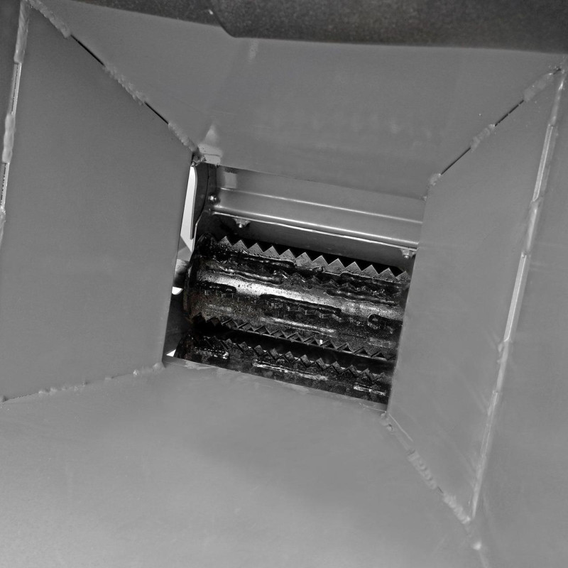 Подрібнювач поставляється із завантажувальним бункером, що має отвір 51х51см, що спрощує процес завантаження матеріалу. Нижній отвір розміром 102х254 см забезпечує ефективний викид подрібненої деревини.