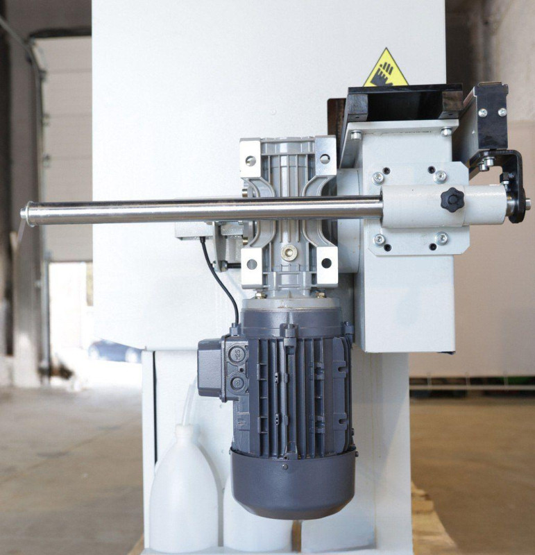 Деталь подается цепным конвейером с обрезиненными башмаками. Ширина башмаков 73 мм. Привод-мотор-редуктор 2,2 кВт VARVEL.