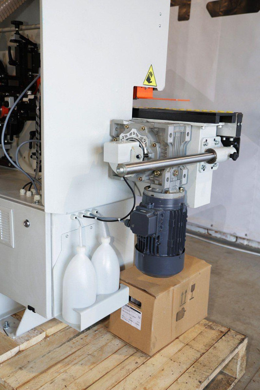 Настройка узла производится с помощью счетчика, что обеспечивает точность и простоту перенастройки; Антистатическое покрытие роликов гарантирует чистую поверхность кромочного материала и равномерный прижим кромки; Коническая форма второго и третьего роликов обеспечивает качественную приклейку кромки даже без предварительного фрезерования.