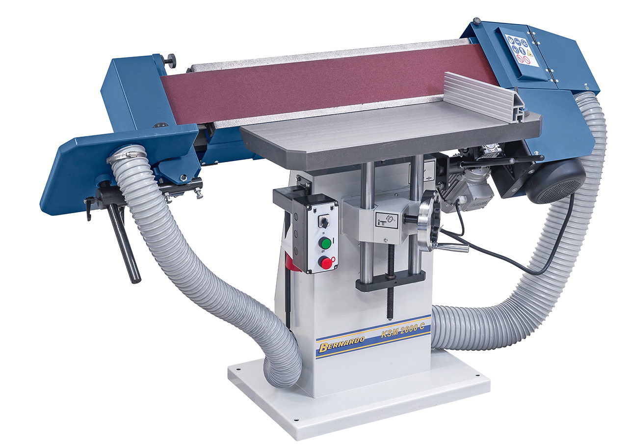 Головний привід верстата розвиває потужність до 3.0 кВт, досягаючи обертів до 2840 за хвилину. Швидкість руху шліфувальної стрічки становить 20 м/с, забезпечуючи швидку та якісну обробку поверхонь. Додаткові опції, такі як розширення шліфувального столу з роликами та поворотна лінійка, роблять верстат ще більш функціональним.