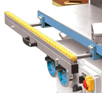 Шліфувальний верстат STOMANA KSM 3000 оснащений серійним пристроєм для шліфування меблевої кромки, який легко налаштовується та забезпечує точне виконання робіт. Контактний наконечник, розвантажувальні ролики та обмежувачі забезпечують оптимальні умови для роботи.