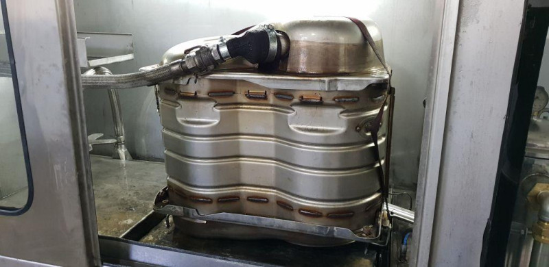 Какие преимущества гидродинамической очистки DPF и SCR фильтров перед термической?Термический метод эффективно удаляет сажу (углеродные частицы), но не может полностью удалить золу (неорганические остатки, являющиеся основной причиной стойкого засорения). Гидродинамический метод использует воду и специальные химические реагенты под высоким давлением, что позволяет эффективно вымыть золу и церий из керамических стенок фильтра.