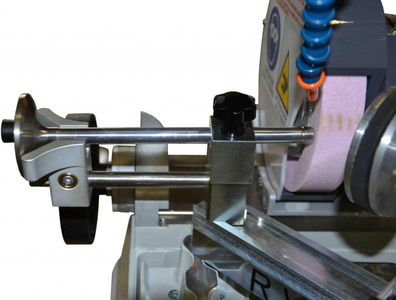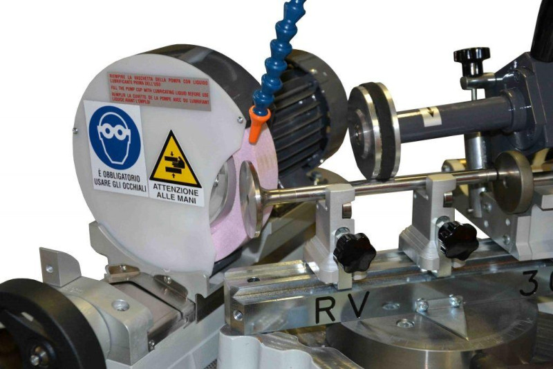 Вместо традиционных цанговых или шариковых патронов для фиксации штока клапана используется система двойных V-образных опор, что гарантирует высокую точность позиционирования и ускоряет настройку станка. Низкая скорость вращения штока в сочетании с высокой скоростью круга обеспечивает чистую, гладкую поверхность без следов или рисок. Встроенный насос охлаждающей жидкости предотвращает перегрев металла и изменение его структуры. Также этот станок для шлифовки клапанов оснащен универсальным приспособлением для шлифовки торца клапана, что позволяет идеально выровнять высоту клапанов.