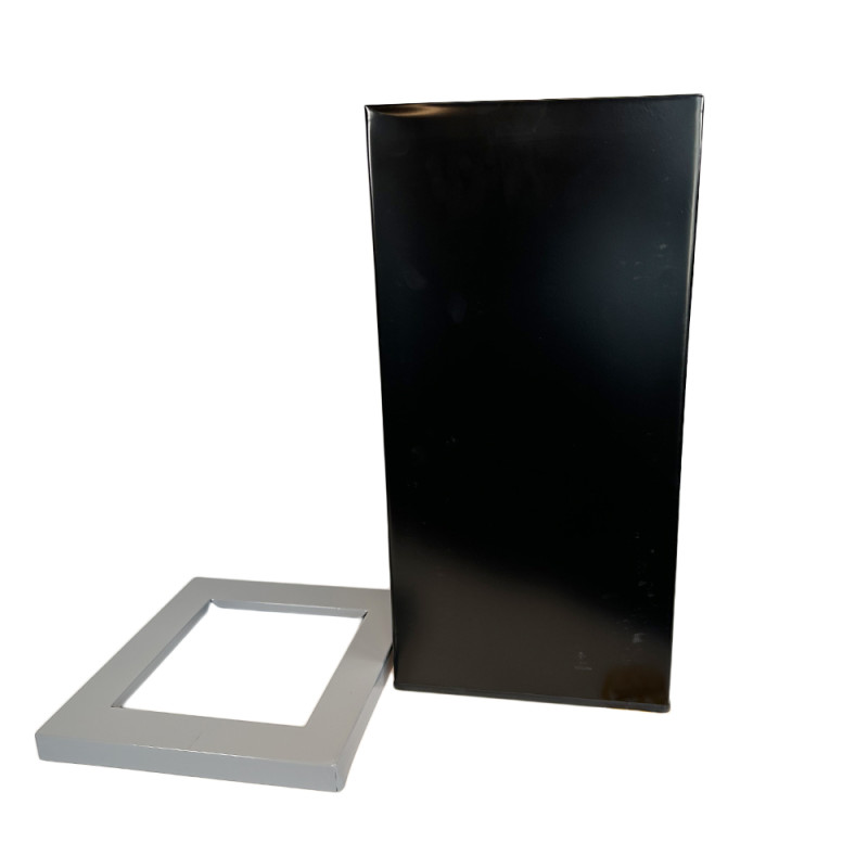 Контейнер виготовлений із якісної нержавіючої сталі, що робить його довговічним та надійним. Поверхня контейнера покрита порошковою фарбою чорного кольору, яка надає йому особливий шарм і робить його такими, що легко вписуються в будь-яке приміщення, будь то квартира, офіс або громадське місце.