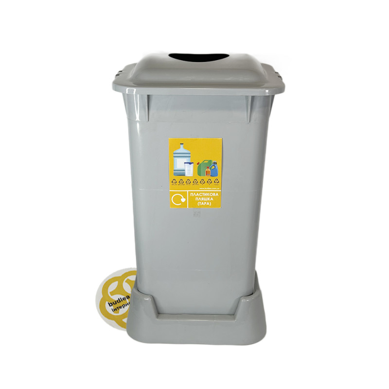 - Призначення сортування: папір, пластик, скло, стаканчики.