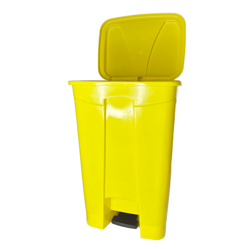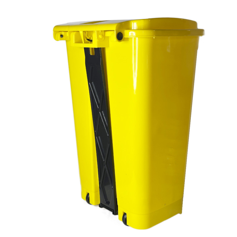 Сміттєвий бак на колесах з педаллю об'ємом 85 літрів виготовлений із міцного пластику, оснащений кришкою з безконтактним відкриттям та зручними колесами для переміщення. Висота без кришки – 71 см, розмір верхньої частини – 36,5×49,5 см. Доступний у жовтому, зеленому та сірому кольорах, підходить для сортування відходів. Купити бак для сміття 85 літрів за вигідною ціною з доставкою по Україні.