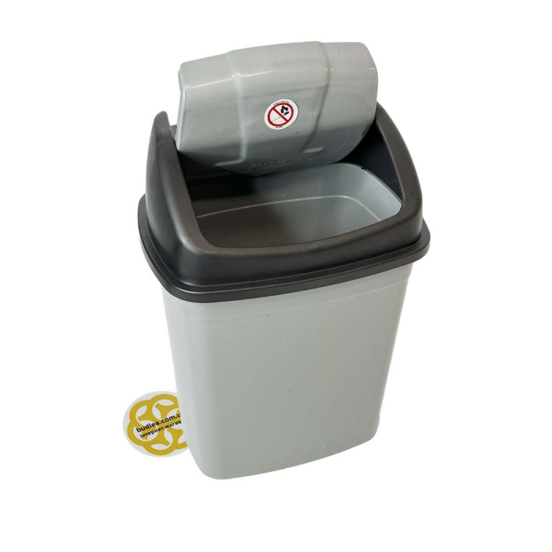 - Кришка для гігієнічності: Міцна кришка, що хитається, запобігає попаданню запахів сміття в навколишнє середовище і забезпечує додаткову гігієнічність.
