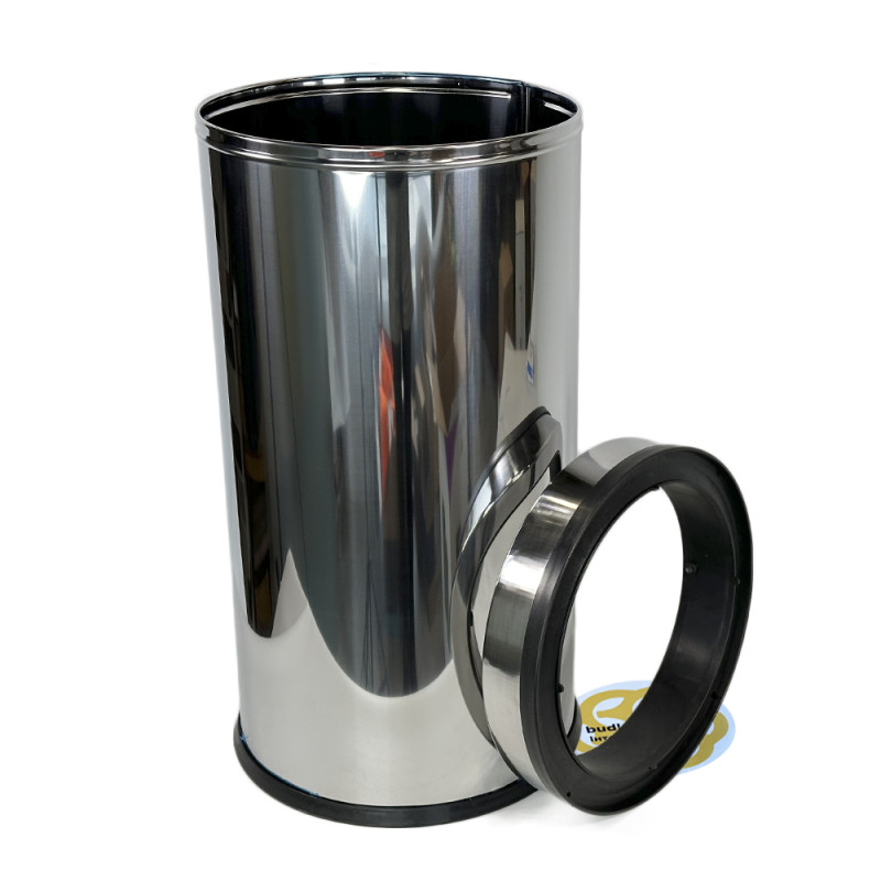 Відро та обідок виготовлені з нержавіючої сталі марки AISI 430. Кришка може служити фіксатором для пакету для сміття.