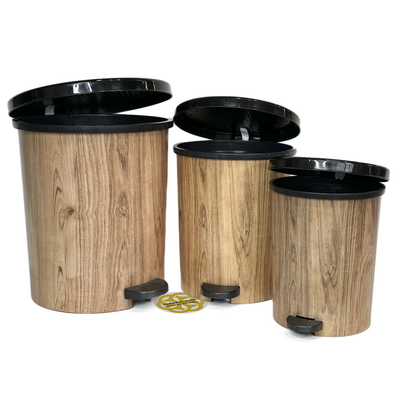 Основні характеристики Набір відер з педаллю WOOD 22Л, 11Л і 7Л, пластик, з візерунком та внутрішнім відром SNMZ