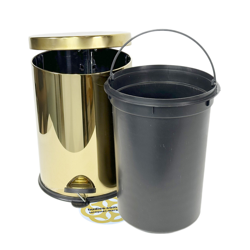 Елегантний золотий колір чудово поєднується з будь-яким інтер'єром, надаючи простору вишуканості та блиску. Практична педаль забезпечує зручність використання – миттєво відкривайте кришку, не докладаючи зусиль. Це не лише стильний елемент декору, а й надійний союзник у підтримці чистоти та порядку.