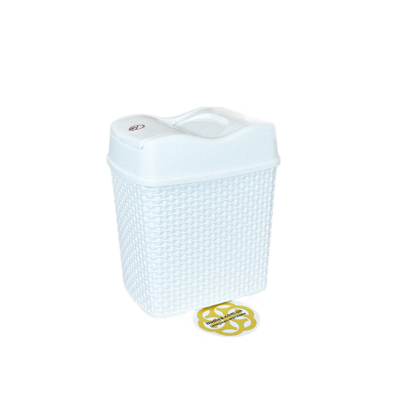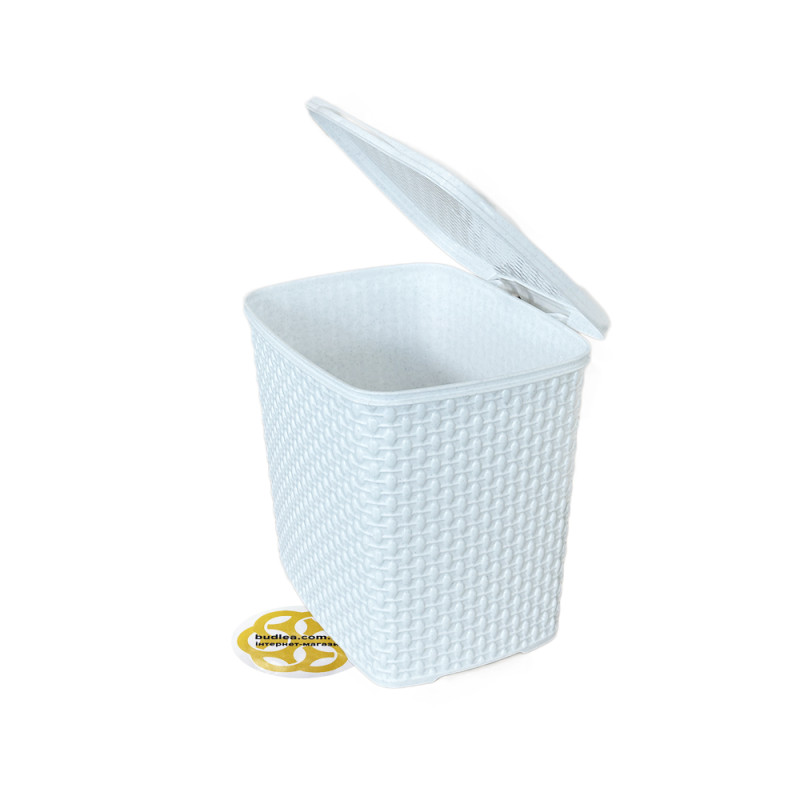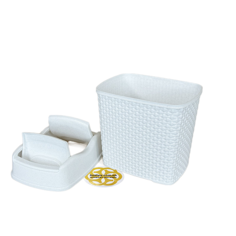 - Ведерко с крышкой для моющих средств: С этим ведерком в ванной комнате поддержание чистоты станет легким и стильным процессом. Удобные размеры и вязаная отделка добавляют этому предмету изысканности.
