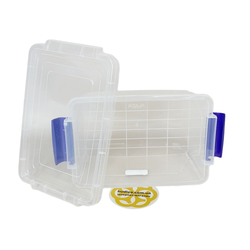 - Пластикова конструкція: Пластиковий матеріал забезпечує легку вагу контейнера, що робить його простим у користуванні та перенесенні.