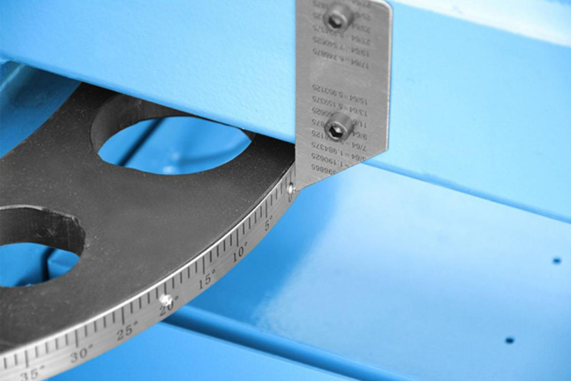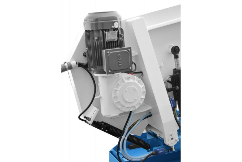 Трехфазный двигатель мощностью 4,4 кВт устойчив к нагрузкам и обеспечивает стабильную производительность в промышленных условиях. Скорость опускания пильной рамы контролируется гидроцилиндром, что позволяет точно контролировать подачу полотна. Благодаря повороту головы в диапазоне от -60° до +60°, станок легко справляется с раскроем профилей и труб для сложных металлоконструкций без необходимости перемещения самой заготовки. Память положения рамы экономит рабочее время и повышает производительность, что делает этот полуавтоматический ленточнопильный станок эффективным выбором для серийного раскроя.