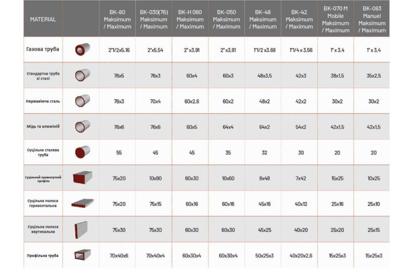 | мін. Макс. Діаметр труби: | Ø10-38 мм (1 8-1) |