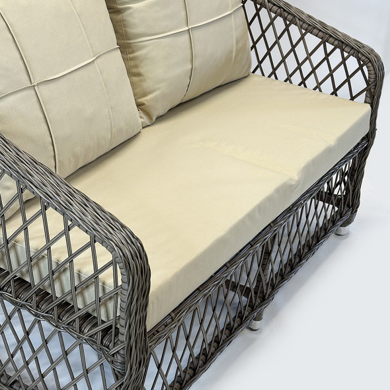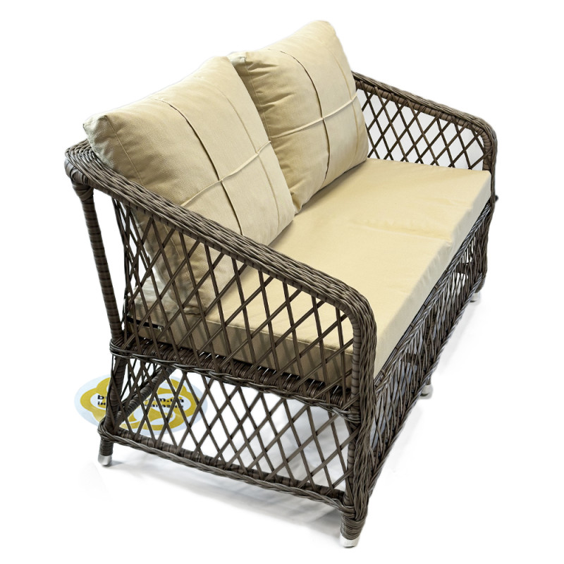 - Максимальный комфорт: Двухместный диван и стулья оборудованы мягкими и удобными подушками бежевого цвета, обеспечивая вам непревзойденное удовольствие при сидении.