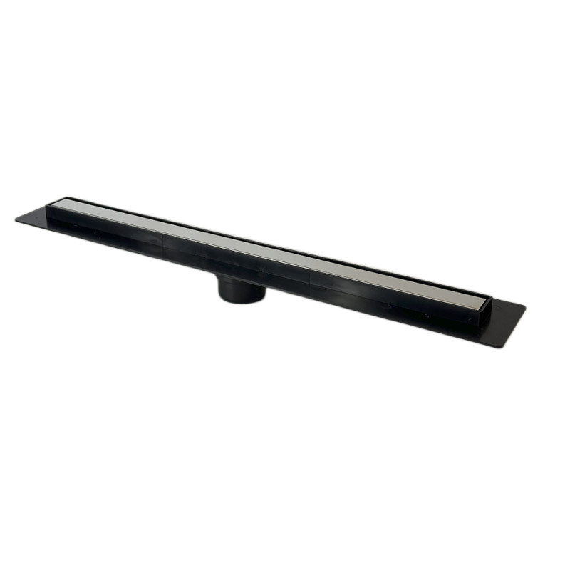 Трап для душа THIN тонкий с вертикальным выходом на трубу диаметром 50 мм, корпус и фланец трапа изготовлены из ABS пластика черного цвета, а решетка из нержавеющей стали марки AISI 304, пропускная способность трапа 36 литров в минуту.