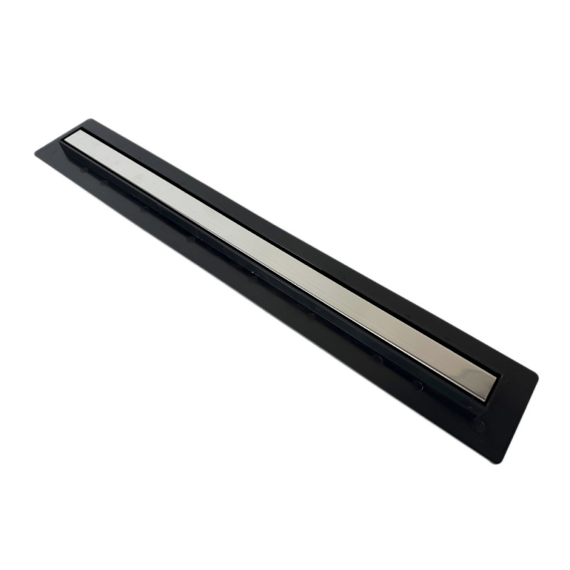 Трап для душа THIN тонкий с вертикальным выходом на трубу диаметром 50 мм, корпус и фланец трапа изготовлены из ABS пластика черного цвета, а решетка из нержавеющей стали марки AISI 304, пропускная способность трапа 36 литров в минуту.