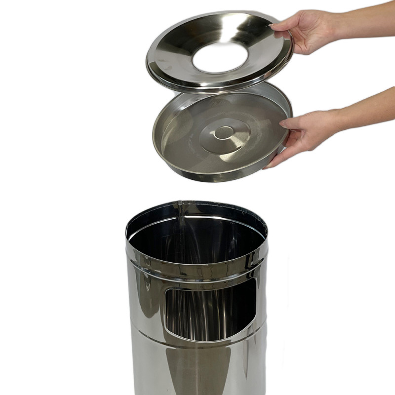 Урна-попільничка виготовлена з нержавіючої сталі марки AISI 430. Вона складається з: циліндричної урни, верхнього кільця, що знімається, і основи для гасіння недопалків. Верхня частина є контейнером для збору попелу, а також своєрідною кришкою для циліндричного відра. Для збирання більшого сміття в урні є бічне отвір. Це дозволяє відокремити сміття від недопалків, які можуть спалахнути сміття. Але навіть якщо таке станеться, з виробом нічого не станеться, оскільки він виготовлений з нержавіючої сталі.