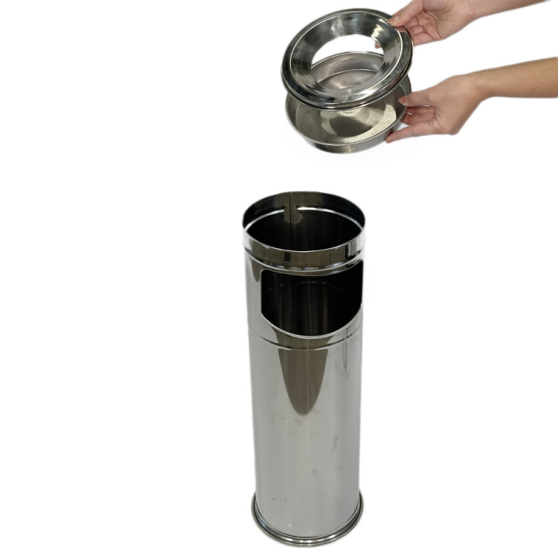 Урна-попільничка виготовлена з нержавіючої сталі марки AISI 430. Вона складається з: циліндричної урни, верхнього кільця, що знімається, і основи для гасіння недопалків. Верхня частина є контейнером для збору попелу, а також своєрідною кришкою для циліндричного відра. Для збирання більшого сміття в урні є бічне отвір. Це дозволяє відокремити сміття від недопалків, які можуть спалахнути сміття. Але навіть якщо таке станеться, з виробом нічого не станеться, оскільки він виготовлений з нержавіючої сталі.