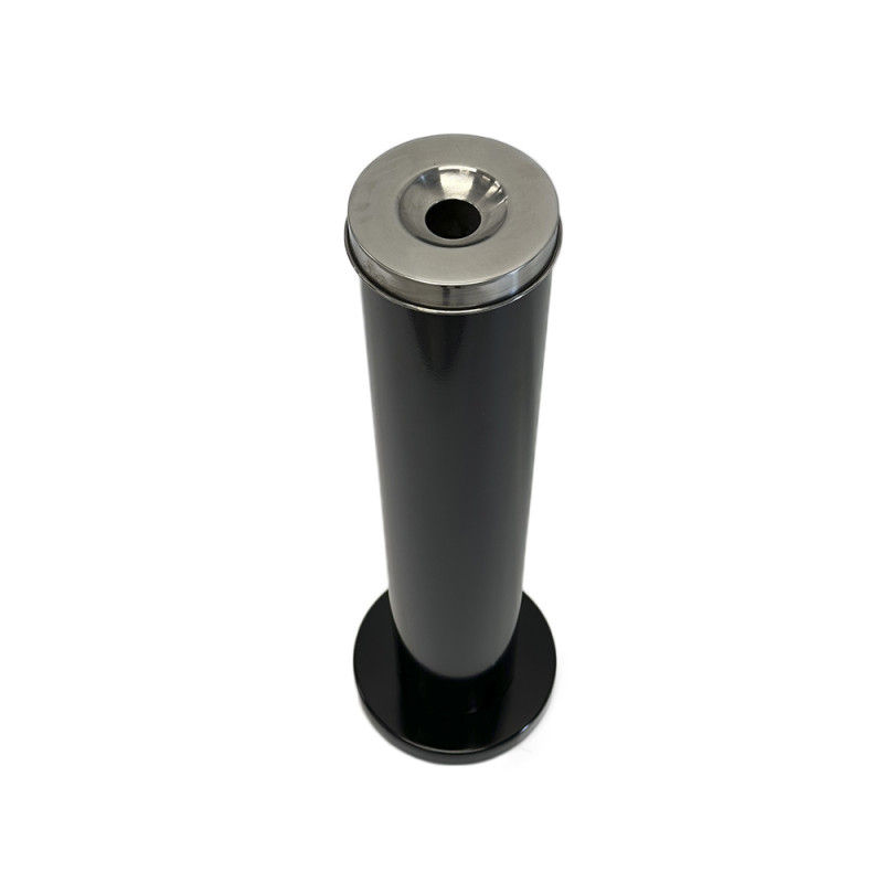 Изделие состоит из трех элементов: основания с утяжелителем для стабильности, трубы на ножке и верхнего ободка для тушения окурков. Внутренняя чаша предназначена для сбора пепла и мусора, обеспечивая простоту в использовании и удобство в обслуживании.