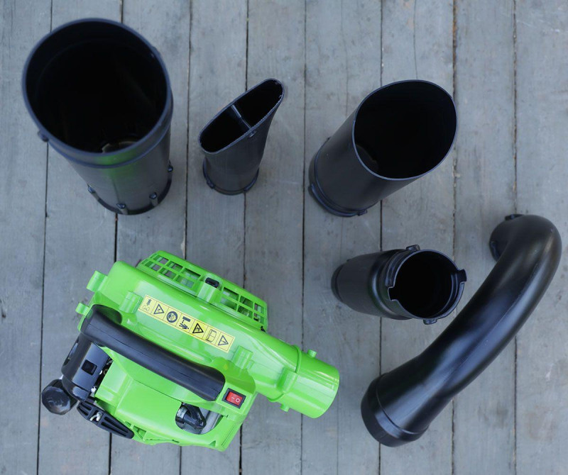 - Функция пылесоса для листьев, которая позволяет впитывать листья в прикрепленный пакет.